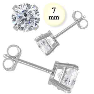 14K White Gold Stud Earring Aprx 1.5 Carat Total Weight, 7mm Each Round Simulated Diamond Earring. Set on High Quality Prong Setting & Friction Style Post 14K White Gold Stud Earring Aprx 1.5 Carat Total Weight, 7mm Each Round Simulated Diamond Earring. Set on High Quality Prong Setting & Friction Style Post