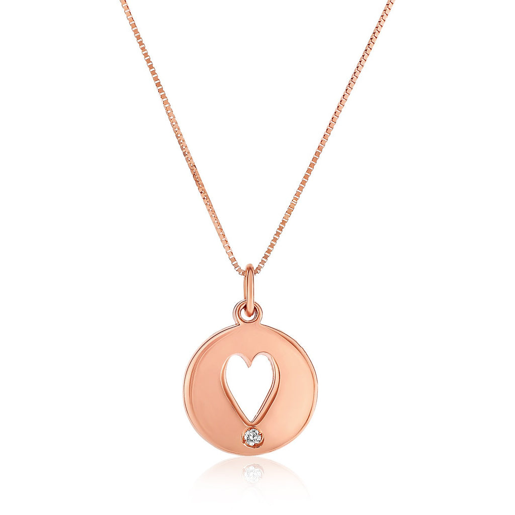 14K Rose Gold Necklace with Gold and Diamond Cutout Heart Pendant 14K Rose Gold Necklace with Gold and Diamond Cutout Heart Pendant