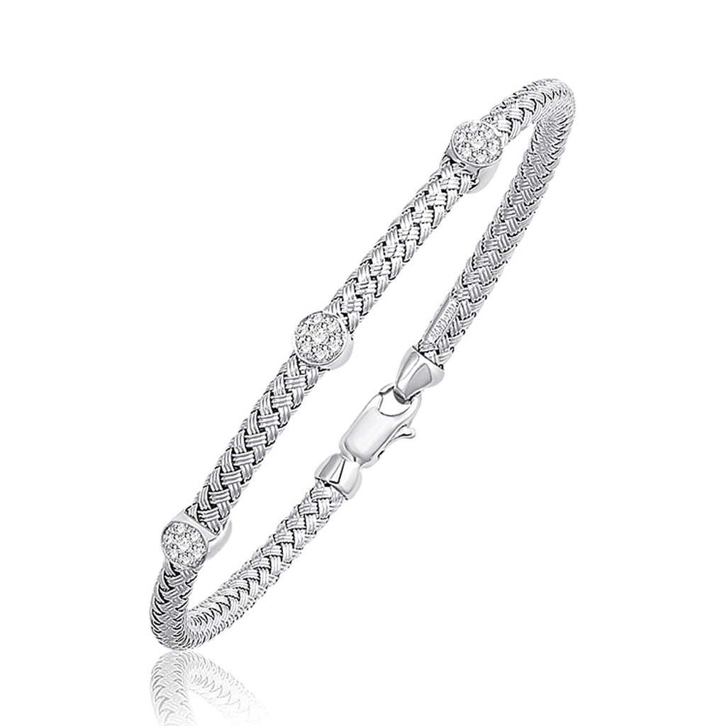 Basket Weave Bangle with Diamond Accents in 14K White Gold (4.0mm) Basket Weave Bangle with Diamond Accents in 14K White Gold (4.0mm)