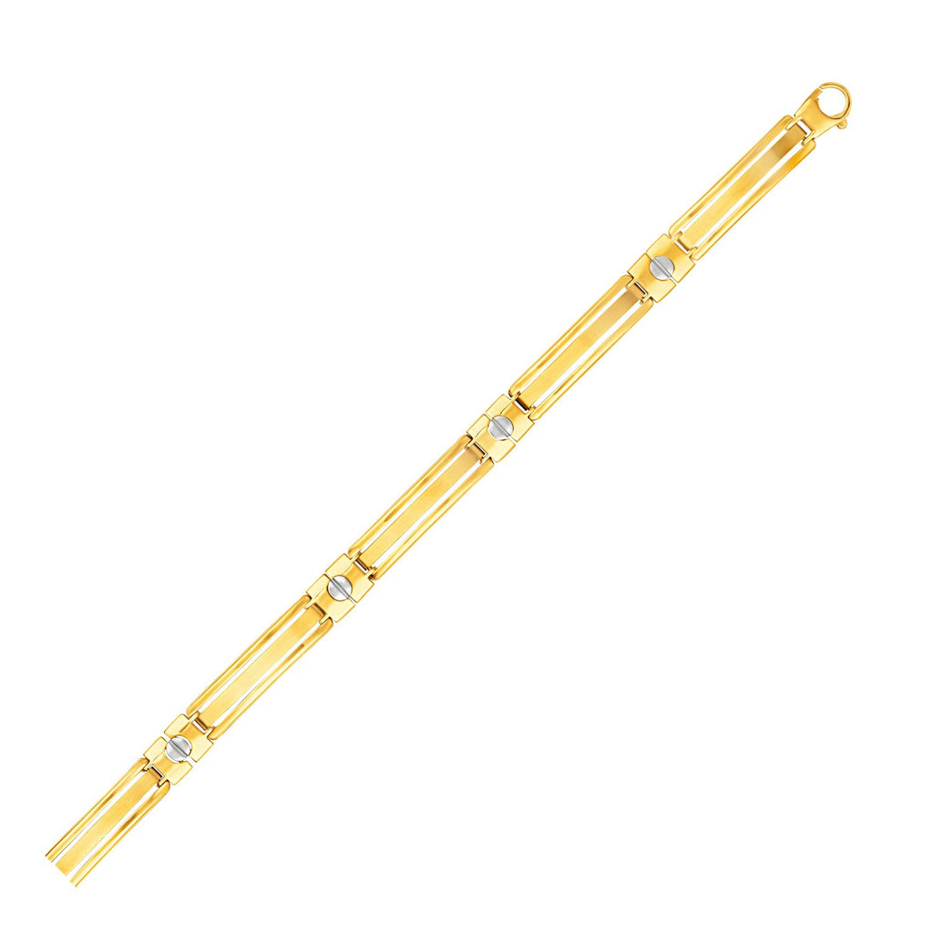 14K Two-Tone Gold Men's Bracelet with Screw Head Motif Accents 14K Two-Tone Gold Men's Bracelet with Screw Head Motif Accents