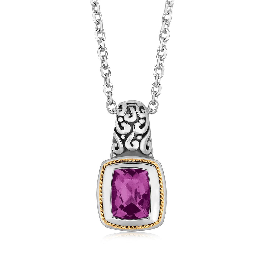 18K Yellow Gold and Sterling Silver Necklace with Milgrained Amethyst Pendant 18K Yellow Gold and Sterling Silver Necklace with Milgrained Amethyst Pendant
