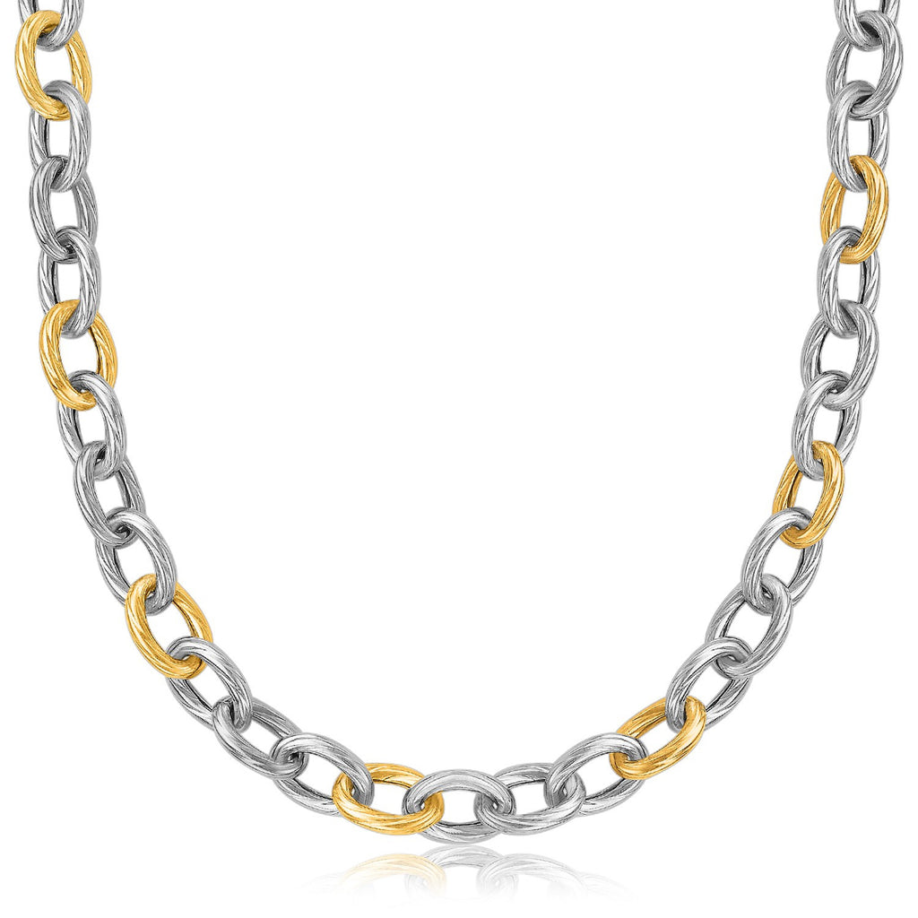 18K Yellow Gold and Sterling Silver Rhodium Plated Diamond Cut Chain Necklace 18K Yellow Gold and Sterling Silver Rhodium Plated Diamond Cut Chain Necklace