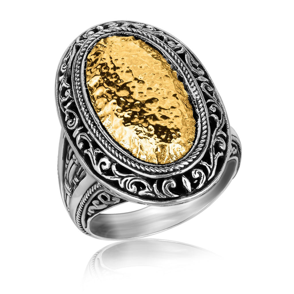 18K Yellow Gold and Sterling Silver Vintage Inspired Oval Hammered Ring 18K Yellow Gold and Sterling Silver Vintage Inspired Oval Hammered Ring